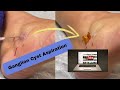 This video is not for everyone but does show a simple aspiration of a ganglion cyst. If you want to learn more about what a ganglion cyst is...